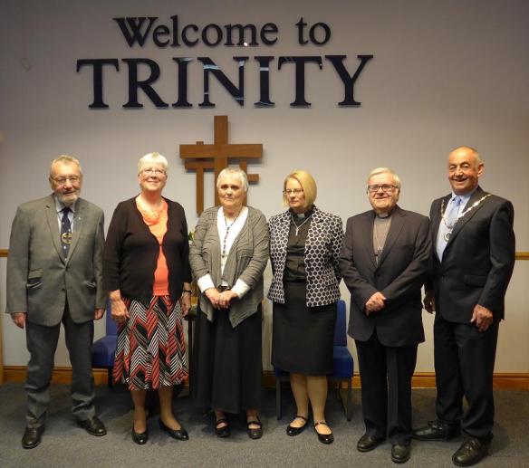 Trinity Methodist Church celebrated 50 years since the three Methodist Churches in Immingham came together to form one Church in 1965 and as one of the Church celebration events a Dinner was held to mark this occasion. 42 members and friends of the church were joined for the dinner by former Ministers, Revd Angela Singleton who is now living in High Wycombe, Deacon Brenda Hayes from Sherringham, Revd Ian Wales who now lives and works in Brigg, and Revd Alex Conn who has retired back to Immingham, they were welcomed by the current Minister Revd Katie Deakins who also welcomed the Mayor of Immingham, Councillor Malcolm Cullum who brought greetings from the Town Council, and thanked the Church for the support they had given him over the last year. After a delicious 3 course meal served by Vallins of Grimsby the after dinner speaker was Revd Ian Wales who reminisced on his time in Immingham and challenged the members and friends gathered to another 50 years of work and witness in Immingham.
